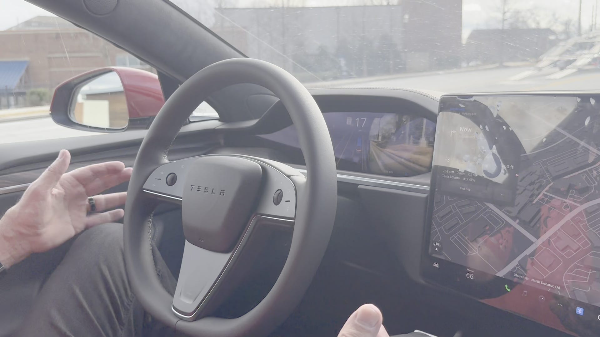 For Christmas this year, Helen and I went away. Most of our family was either traveling (the Insta-Daughter was in Australia with in-laws) or otherwise indisposed, so we went to Atlanta, had a very nice fancy Christmas dinner at the fancy hotel, and on the day after Christmas we went shopping (I was going to buy Helen a bunch of clothes but she didn’t find anything she liked, which was a big win for me!) and we tested a self-driving Tesla. I’d hoped to drive a Cybertruck, but they didn’t have any of those available for test drive so we drove a Model S.