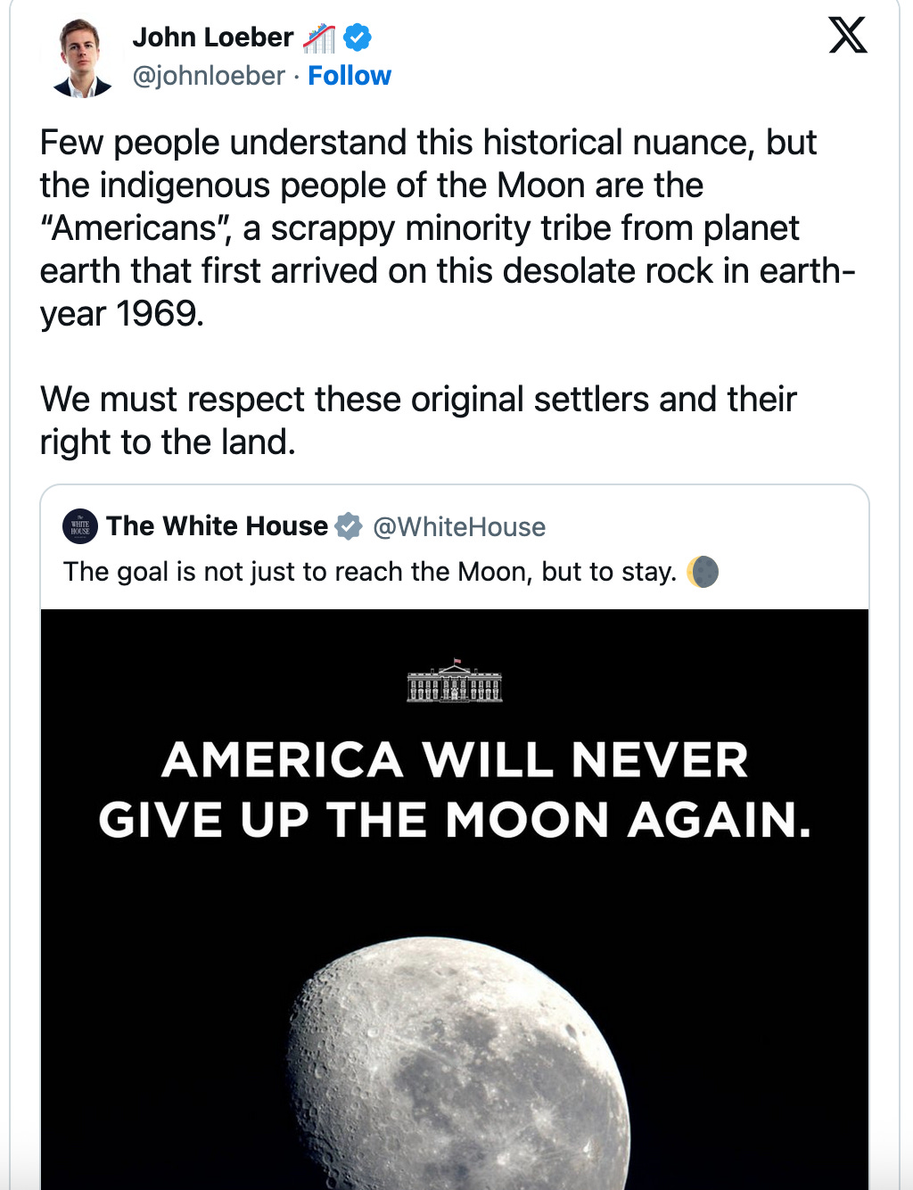That’s right. Trump made it clear in his post-launch speech that were were going back, and we were going back to stay this time. And we’re having fun with it.