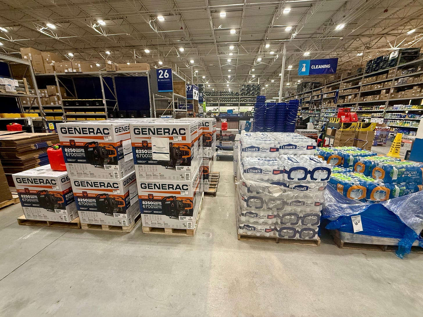 And visiting Lowe’s this morning, I found plenty of generators and bottled water on hand.